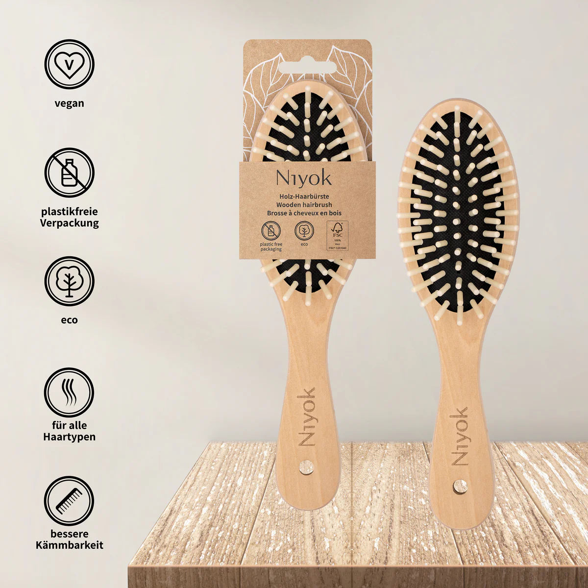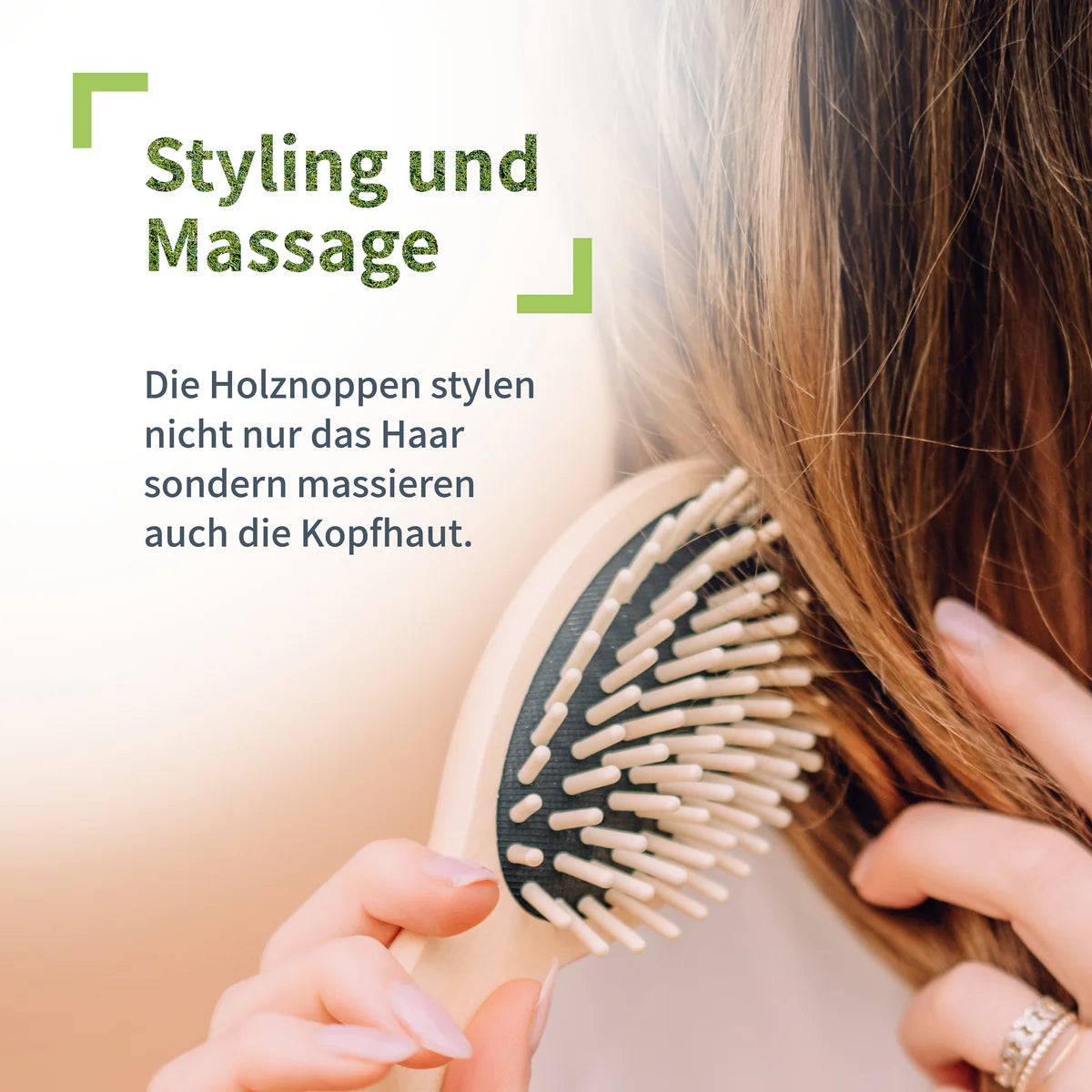 Haarbürste mit Holznoppen (groß) – furça e flokëve me maja druri (e madhe) – përdoret për: