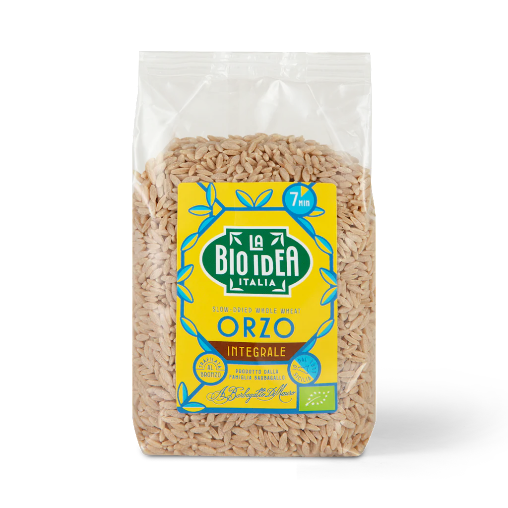Shijoni një makaron të veçantë me formë orizi, të përgatitur nga grurë i plotë organik dhe me origjinë nga bujqësia biologjike. Orzo integrale është zgjedhja ideale për një dietë të shëndetshme, pasi ruan të gjitha vlerat ushqyese të drithit. E pasur me fibra, e shijshme dhe e lehtë për t’u përgatitur – perfekte për supa, sallata ose si garniturë.