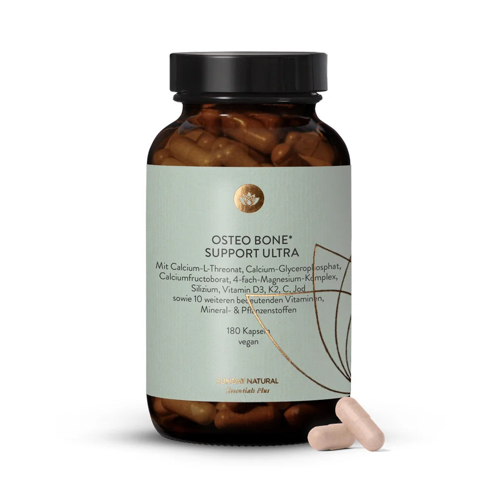 Osteo Bone Support Ultra nga Sunday Natural është formuluar pikërisht për të ndihmuar në parandalimin dhe mbështetjen e trajtimit të osteoporozës.