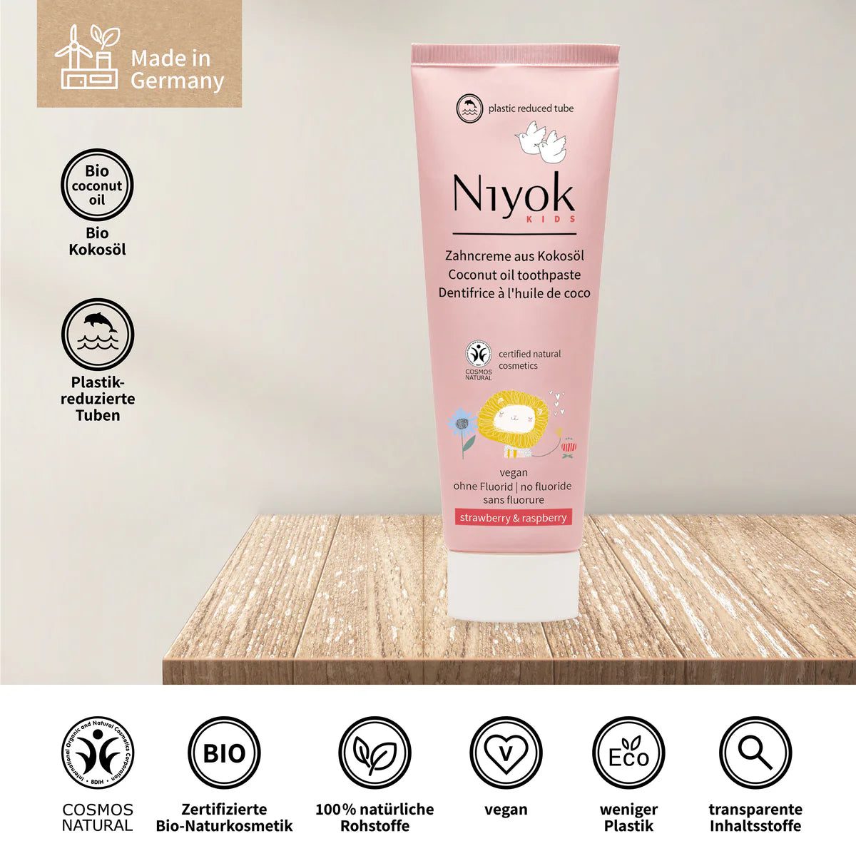 Zahncreme aus Kokosöl - Erdbeere & Himbeere KIDS nga firma Niyok është pastë dhëmbësh natyrale e krijuar posaçërisht për fëmijët. Ja përdorimi i saj: