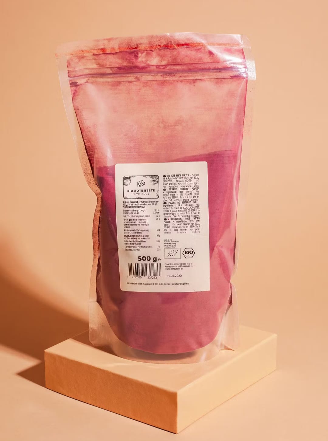 Pluhur rrepe bio nga KoRo është një produkt 100 % organik, vegan dhe me një përmbajtje të lartë fibrash (22 g për 100 g) — ideal për pije, smoothies, supa, sos dhe bërjen e një “pink latte” me ngjyrë natyrale përfitimet kryesore: