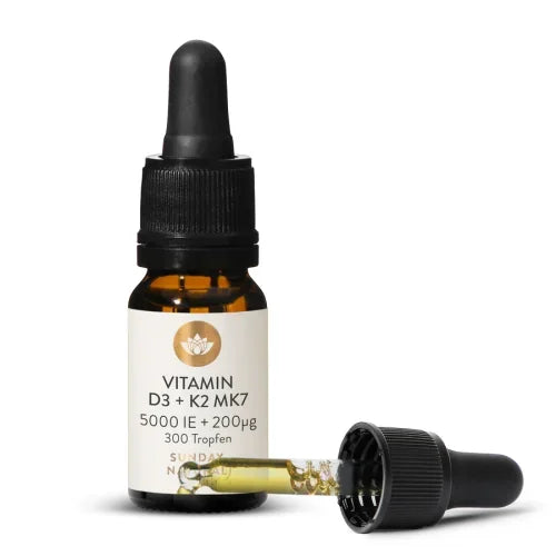 Vitamin D3 (5.000 IU) ve Vitamin K2 MK7 (200 µg) içeren Sunday Natural ürünleri kemik, kas ve kardiyovasküler sağlık için iki temel vitaminin güçlü bir kombinasyonunu sunar.