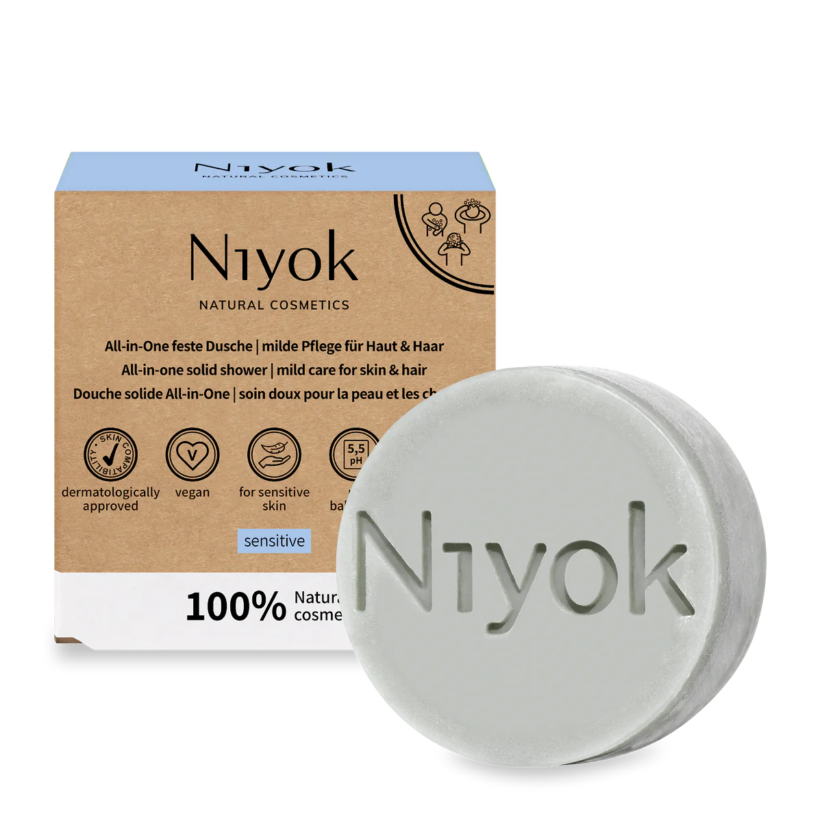 Hepsi Bir Arada Feste Dusche | Niyok'tan Milde Pflege für Haut & Haar - Sensitiv , aşağıdakiler için kullanılan katı sabun (feste Dusche) formundaki doğal bir üründür: